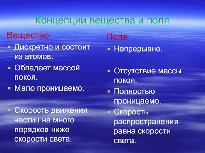 с процессами, происходящими в поле, т.е. они не самостоятельны и зависимы от материи.