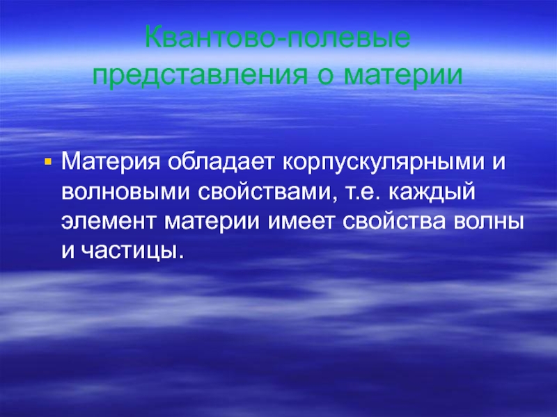 Материя обладает корпускулярными и волновыми свойствами, т.е.