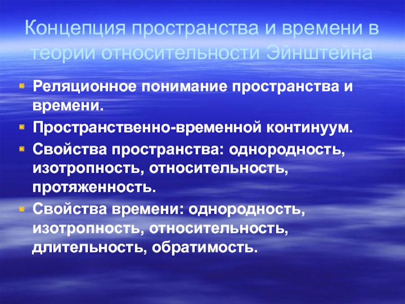 Слайд 19Концепция пространства и времени в теории относительности Эйнштейна
