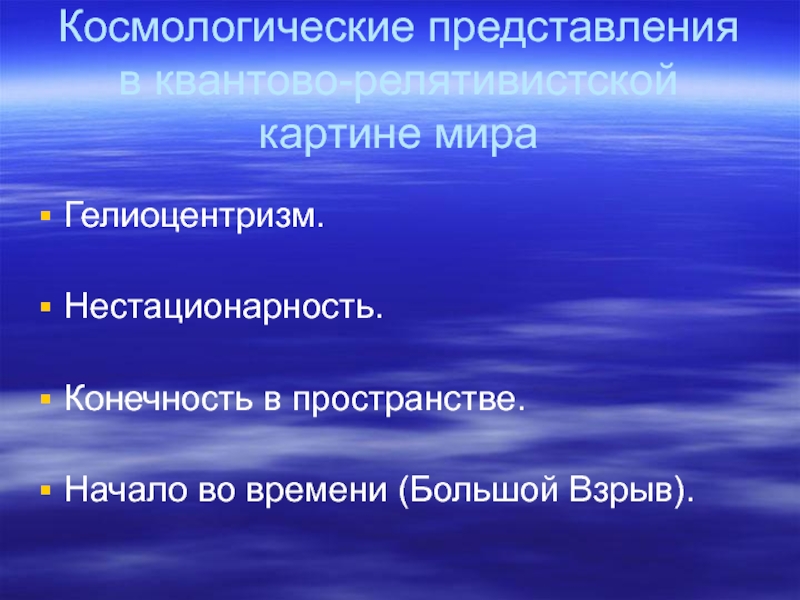 Слайд 22Космологические представления в квантово-релятивистской картине мира