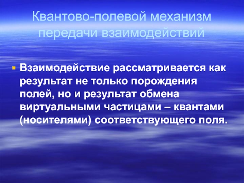 Слайд 20Квантово-полевой механизм передачи взаимодействий