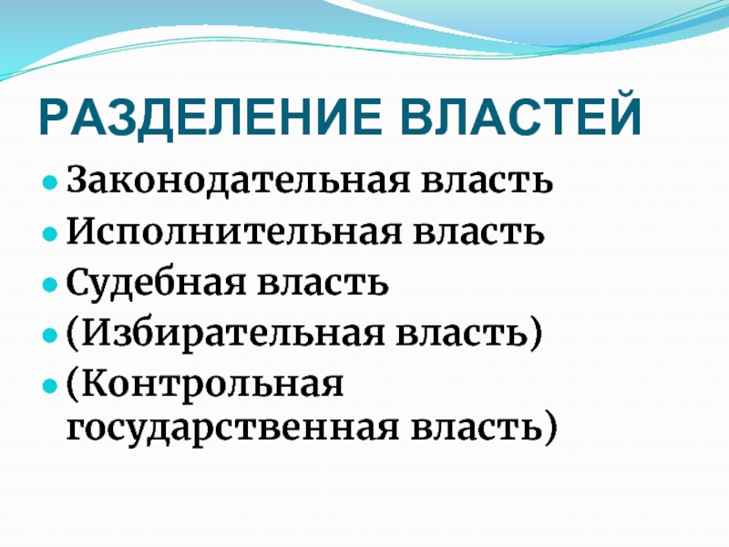 Слайд 5РАЗДЕЛЕНИЕ ВЛАСТЕЙ