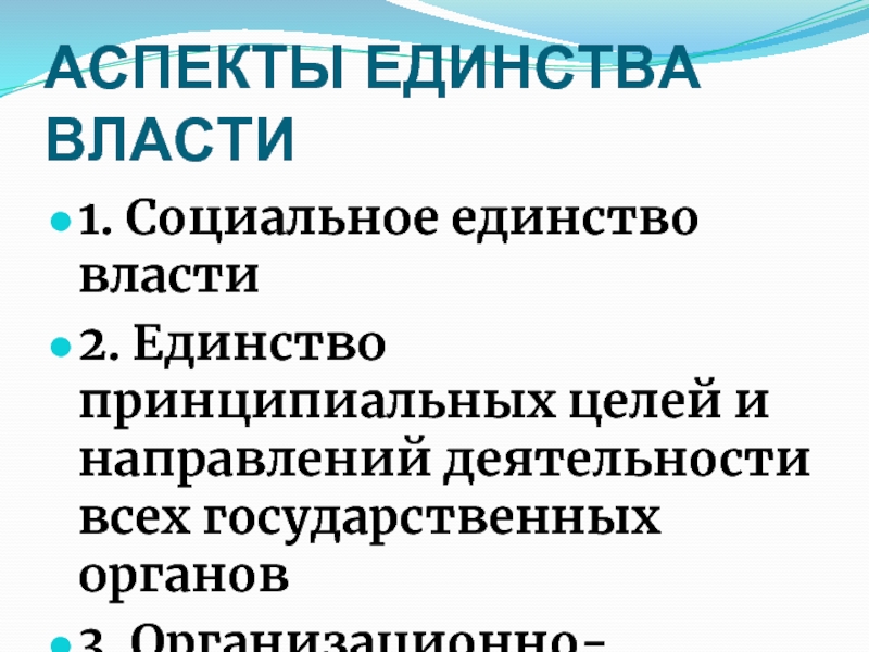 Слайд 7АСПЕКТЫ ЕДИНСТВА ВЛАСТИ