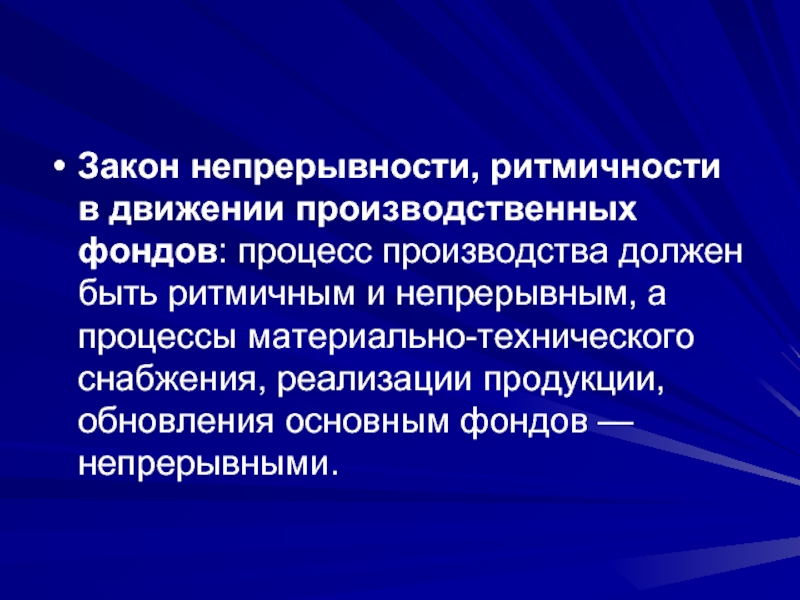 ритмичным и непрерывным, а процессы материально-технического снабжения, реализации продукции, обновления основным фондов — непрерывными.