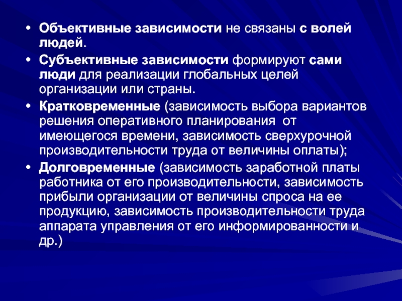 Слайд 5Объективные зависимости не связаны с волей людей.