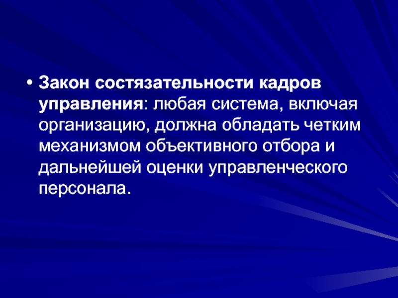 Слайд 71Закон состязательности кадров управления: любая система, включая организацию, должна обладать четким