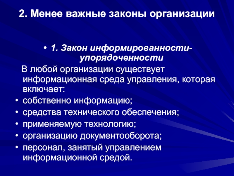 Слайд 162. Основополагающие законы организации