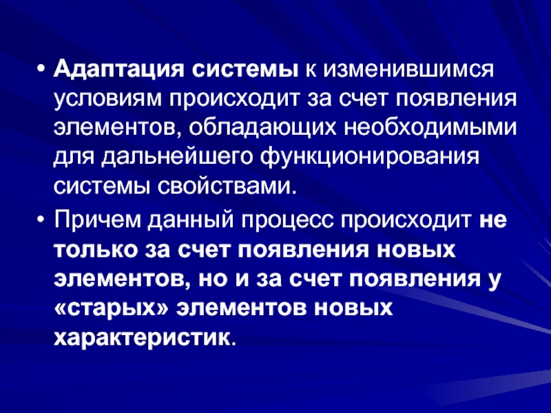 (элементов) главным является целое, которое влияет на части, преобразует их, интегрирует и адаптирует. Элементы системы подчинены целому (системе), развиваются в ее границах при выполнении своих функций.