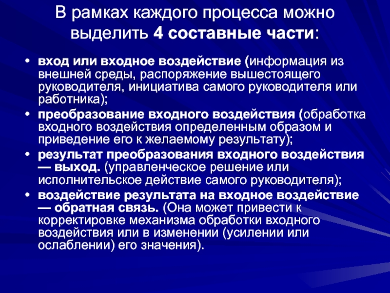 Слайд 3В рамках каждого процесса можно выделить 4 составные части: