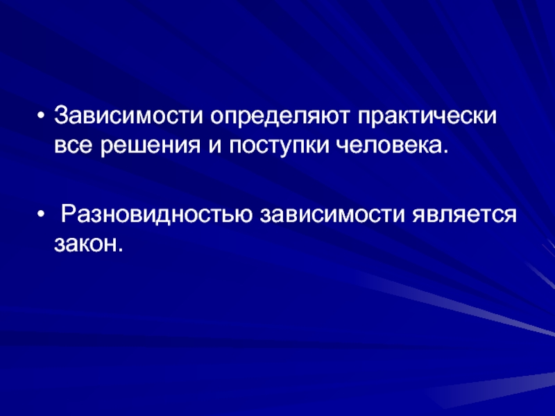 Слайд 7Зависимости определяют практически все решения и поступки человека.