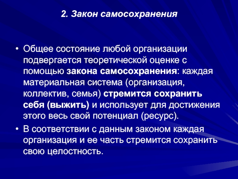 Слайд 212. Закон самосохранения
