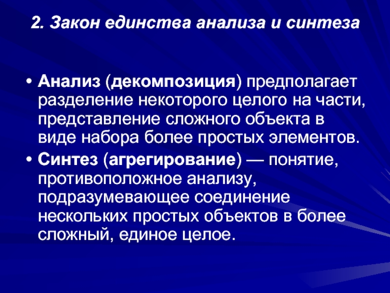 Слайд 562. Закон единства анализа и синтеза