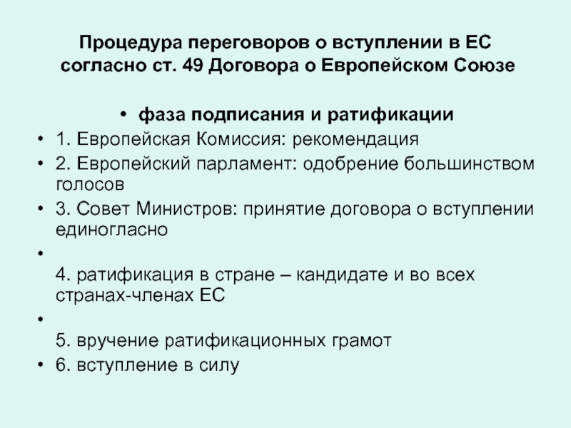 Слайд 22Процедура переговоров о вступлении в ЕС