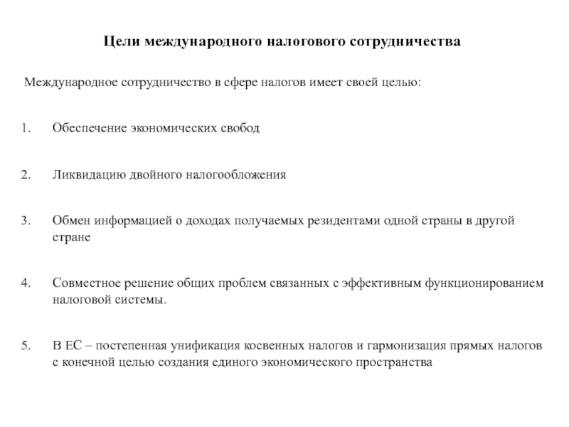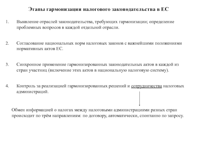 прямое регулирование некоторых вопросов (возврат налогов, электронная коммерция, ограничения связей с оффшорными компаниями, обмен информацией)