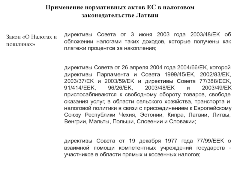 директивы Совета от 3 июня 2003 года 2003/48/EK об обложении налогами таких доходов, которые получены как платежи процентов за накопления;