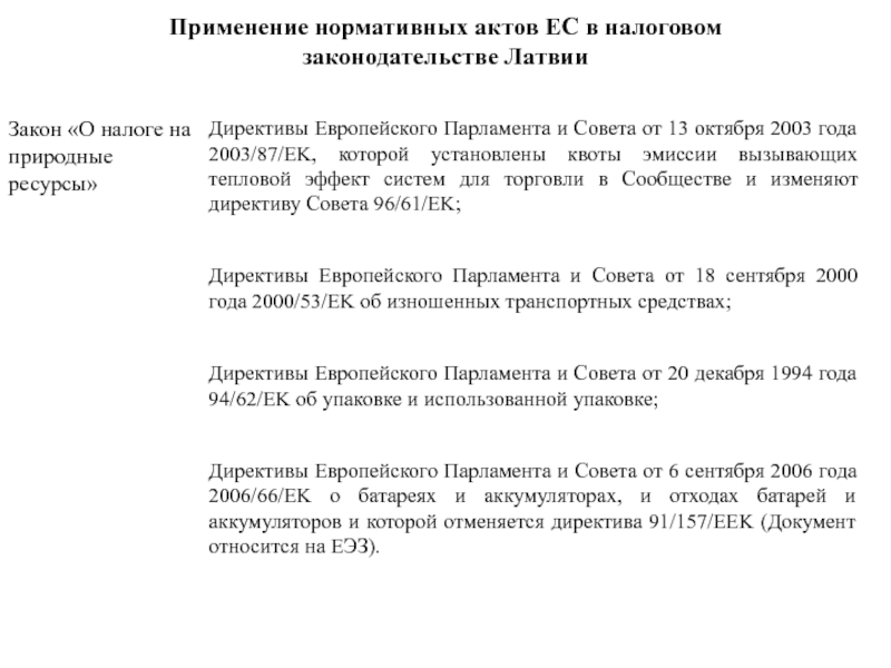 Директивы Европейского Парламента и Совета от 20 декабря 1994 года 94/62/EK об упаковке и использованной упаковке;