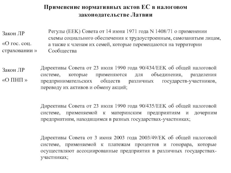 Директивы Совета от 23 июля 1990 года 90/435/EEK об общей налоговой системе, применяемой к материнским предприятиям и дочерним предприятиям, находящимся в разных государствах-участниках;