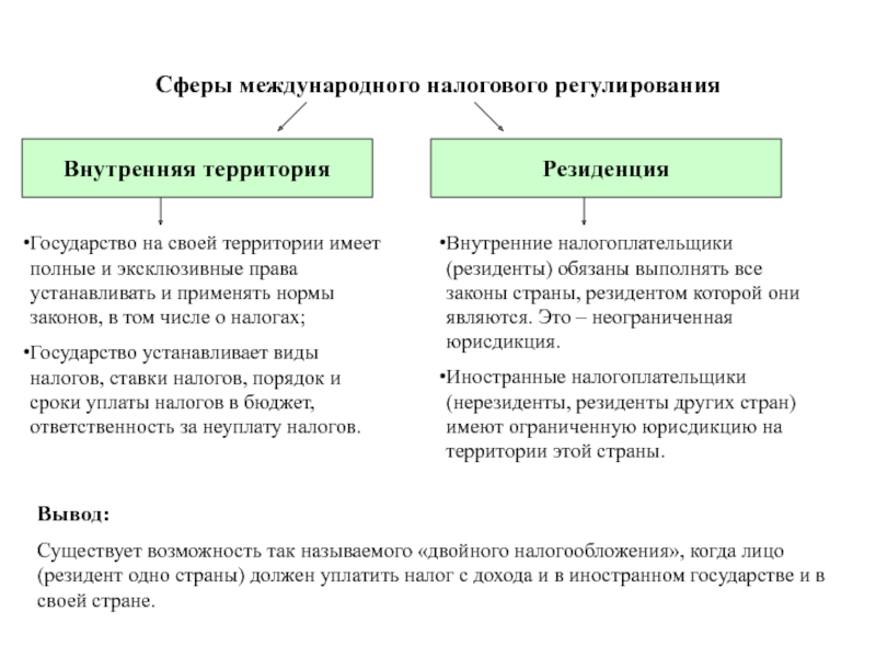 Внутренние налогоплательщики (резиденты) обязаны выполнять все законы страны, резидентом которой они являются. Это – неограниченная юрисдикция.