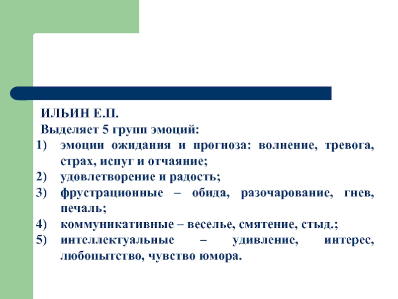 интеллектуальные – удивление, интерес, любопытство, чувство юмора.