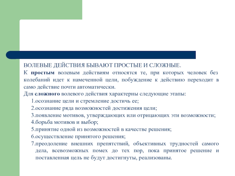Слайд 11ВОЛЕВЫЕ ДЕЙСТВИЯ БЫВАЮТ ПРОСТЫЕ И СЛОЖНЫЕ.