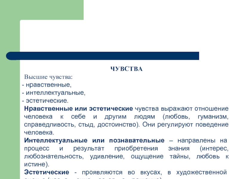 Эстетические - проявляются во вкусах, в художественной оценке (наслаждение, восторг, отвращение).