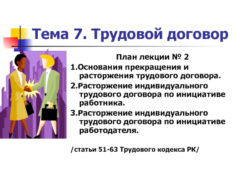 Слайд 14Тема 7. Трудовой договор