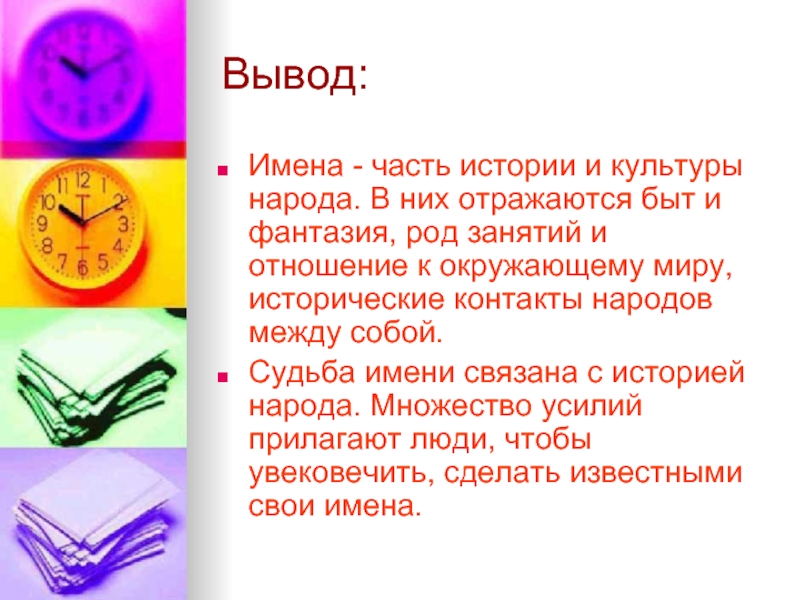 Имена - часть истории и культуры народа. В них отражаются быт и фантазия людей, род занятий и отношение к окружающему миру, исторические контакты народов между собой.