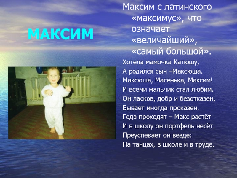 Максим с латинского «максимус», что означает «величайший», «самый большой».