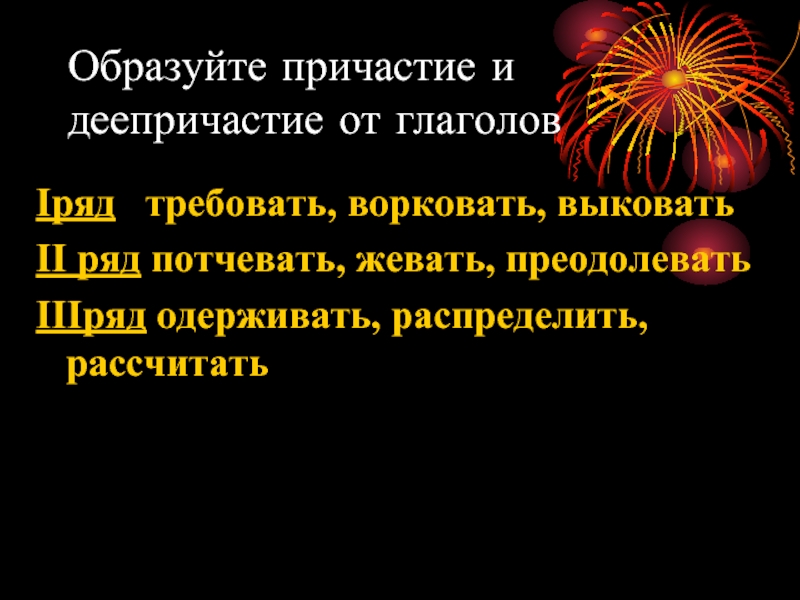 Слайд 6Образуйте причастие и деепричастие от глаголов
