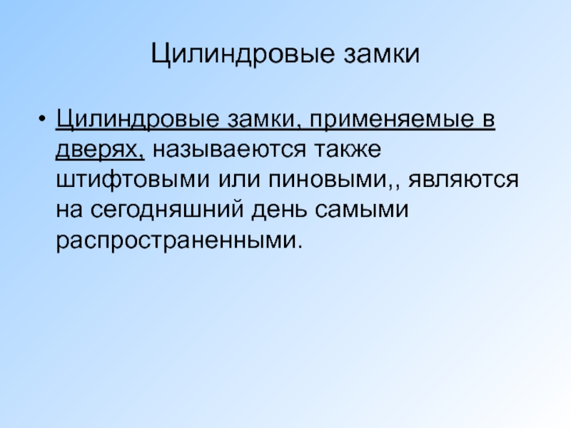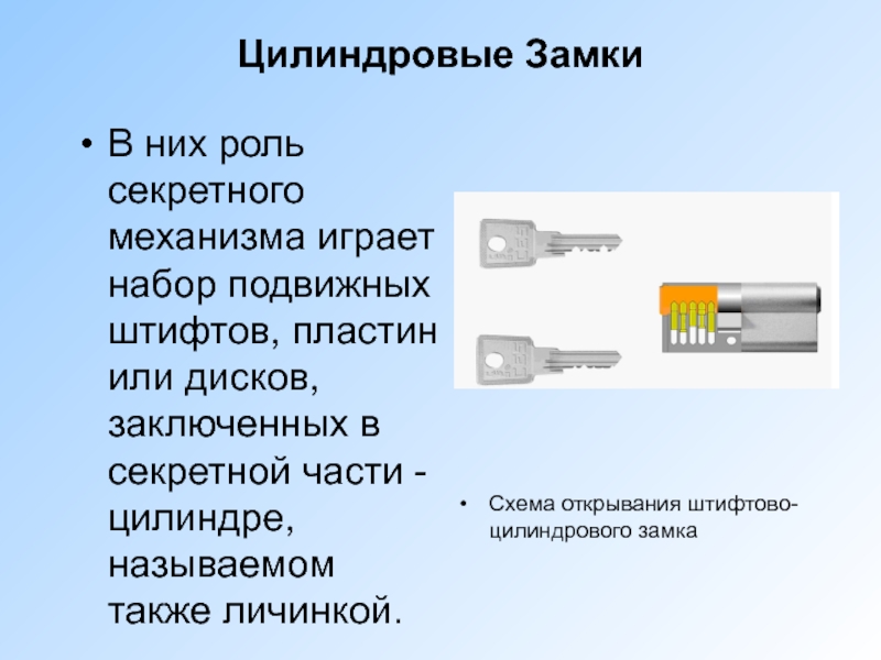 Цилиндровые замки, применяемые в дверях, называеются также штифтовыми или пиновыми,,