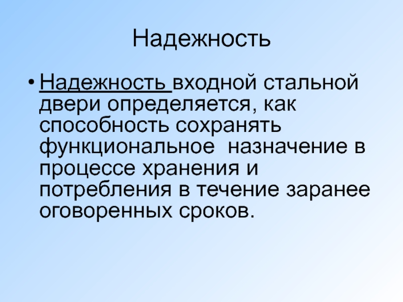 Надежность входной стальной двери определяется, как способность сохранять функциональное назначение