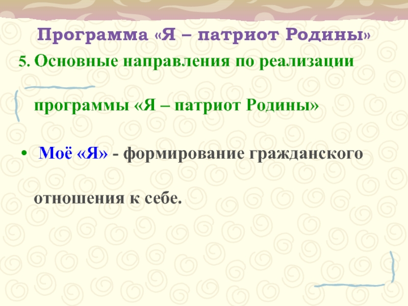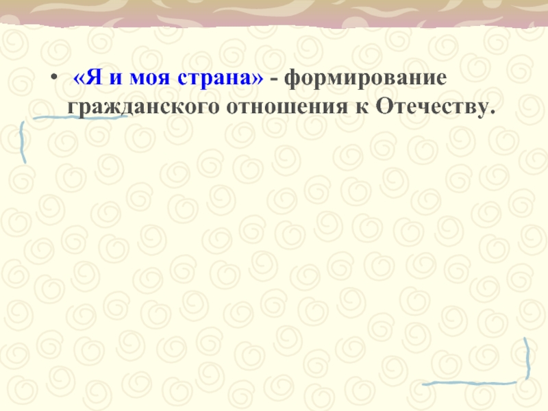 Слайд 8 «Я и моя страна» - формирование гражданского отношения к Отечеству.