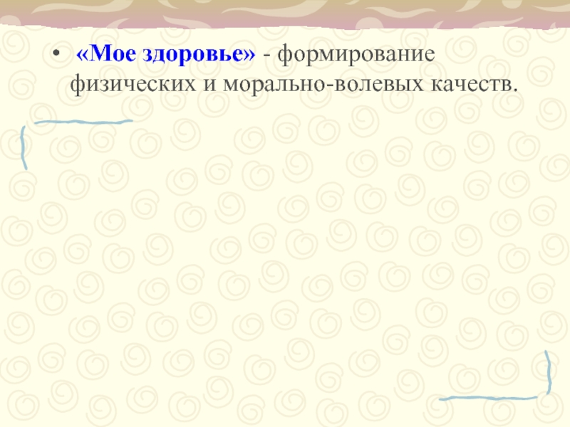 Слайд 11 «Мое здоровье» - формирование физических и морально-волевых качеств.
