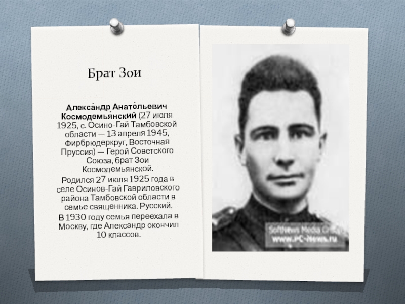 Алекса́ндр Анато́льевич Космодемья́нский (27 июля 1925, с. Осино-Гай Тамбовской области