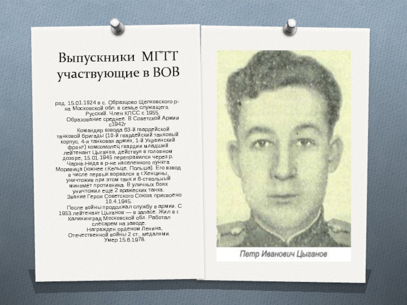 Слайд 12Выпускники МГТТ участвующие в ВОВ