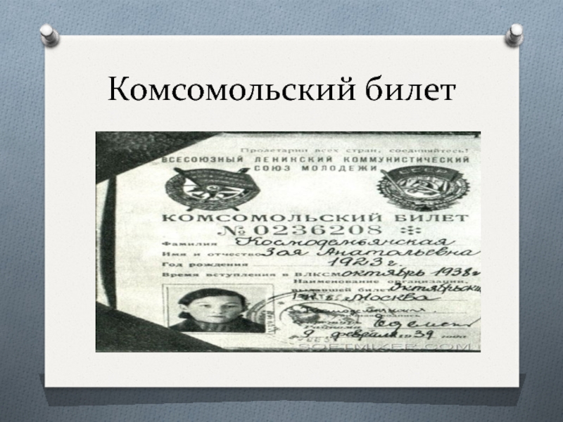 Слайд 1Тема классного часа: «Памяти Зои Космодемьянской»