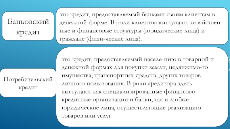 Основными кредитными продуктами этого сегмента банковского кредитного рынка являются: