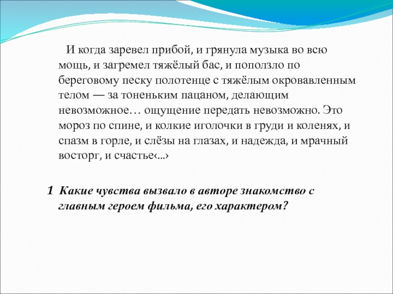 Слайд 181 Какие чувства вызвало в мальчике знакомство с главным героем фильма,