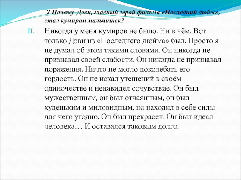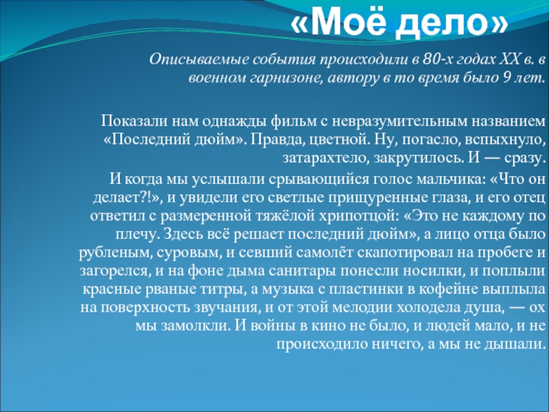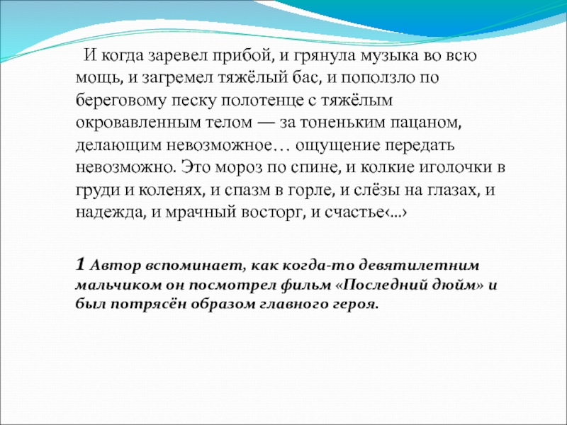 1 Автор вспоминает, как когда-то девятилетним мальчиком он посмотрел фильм «Последний дюйм» и был потрясён образом главного героя.