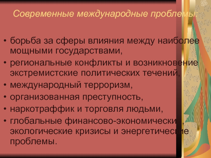 глобальные финансово-экономические, экологические кризисы и энергетические проблемы.