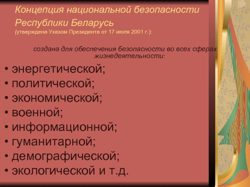 Слайд 3Концепция национальной безопасности Республики Беларусь