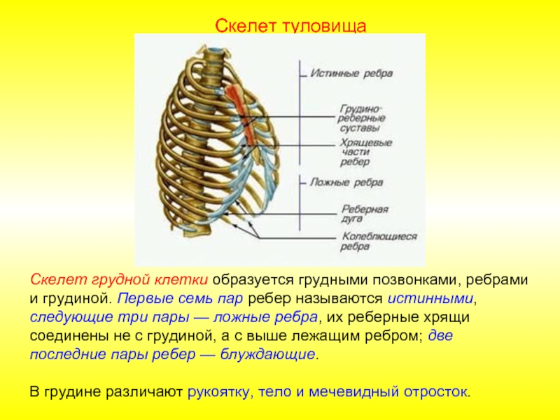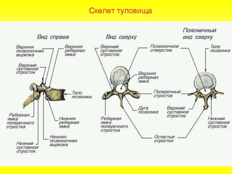 Слайд 12Скелет туловища состоит из скелета позвоночника и скелета грудной клетки.