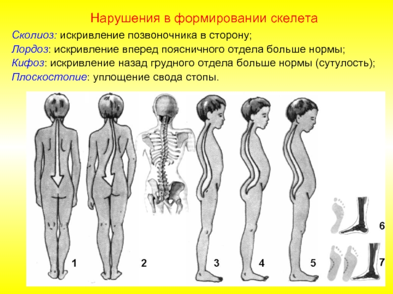 Слайд 20Сколиоз: искривление позвоночника в сторону;