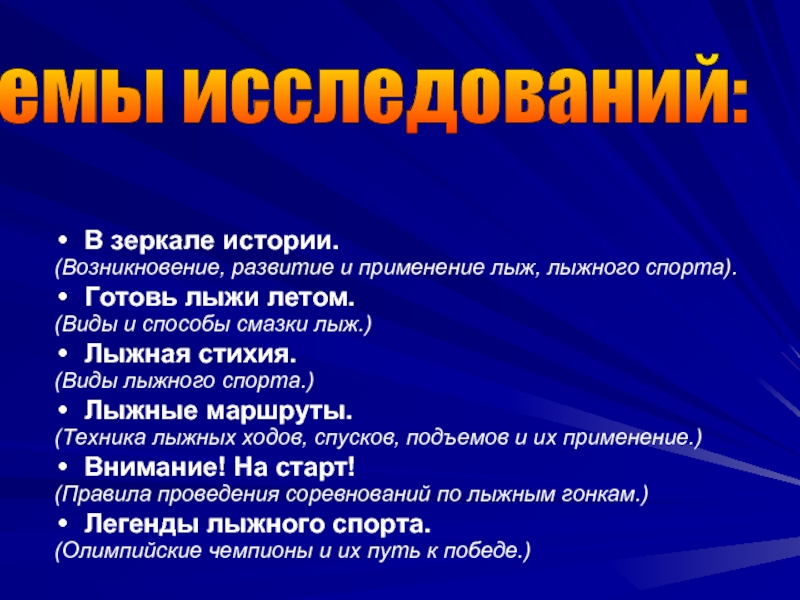 Расширение знаний по лыжной подготовке и пропаганда лыжного спорта.