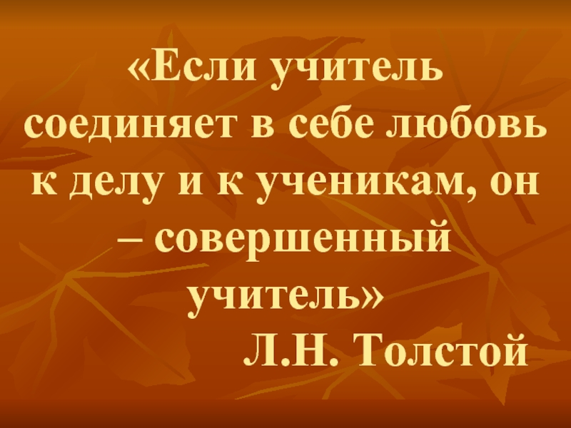 Слайд 4«Если учитель соединяет в себе любовь к делу и к ученикам,