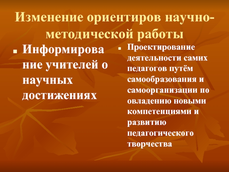 Слайд 9Изменение ориентиров научно-методической работы