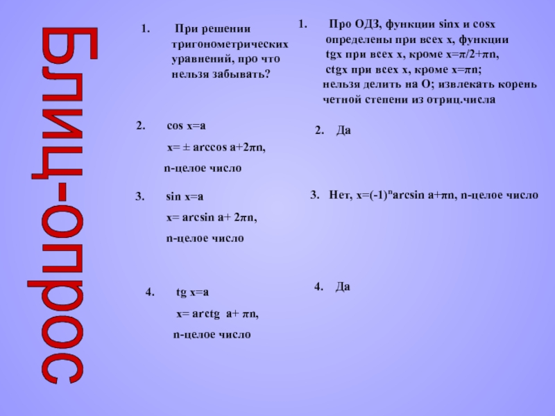 3. Нет, х=(-1)narcsin a+πn, n-целое число