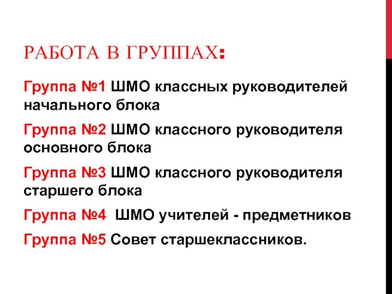 Работа в группах. Выступление групп.