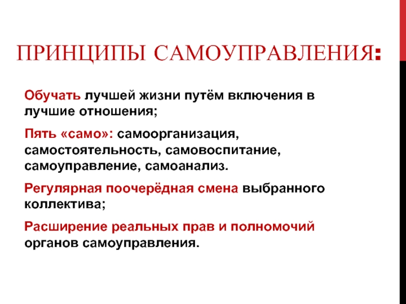 Слайд 18ПРИНЦИПЫ САМОУПРАВЛЕНИЯ: