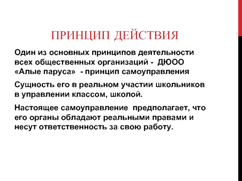 Детско-юношеская общественная организация «Алые паруса», принцип и сущность